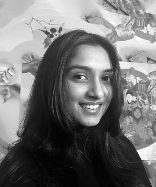 Mihika Poddar is a visual artist from Nepal, currently based in New York City, where she earned her BFA from Parsons School of Design. Her interdisciplinary practice spans both two- and three-dimensional media—including oil and acrylic paint, charcoal, pen and ink, plaster, and mixed media—through which she constructs psychologically charged, symbol-rich worlds. Deeply rooted in memory and imagination, her work serves as a form of introspection and escapism, often returning to the sensibilities of her younger self through recurring motifs drawn from folklore, fairy tales, mythology, and the natural world.